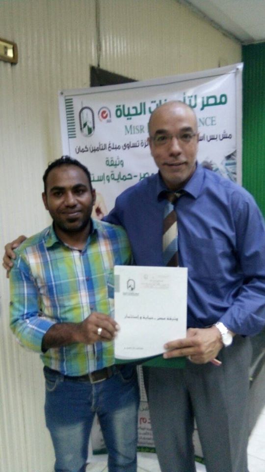محمد خضر شاب مصري جدع شاف اعلانات صفحتنا فورا جه وعمل وثيقه تامين حمايه واستثمار بمبلغ 50000 الف جنيه واستقبله كابتن طارق عبده ووعده بتسليمه هديه الفرع في القريب العاجل.. انت كمان ممكن ب 200 جنيه شهريا احمي اسرتك واولادك لانك مش عارف خطوره انك تسيب ولادك للمجهول بدون حمايه ولا مبلغ يصرفوا منه.. لمزيد من الاستفسار اتصل 01000540550